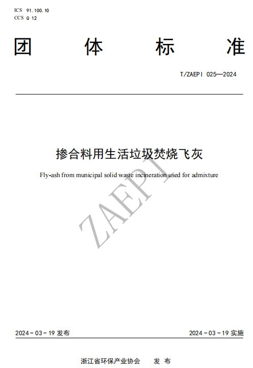 《摻合料用生活垃圾焚燒飛灰》標(biāo)準(zhǔn)號(hào)T/ZAEPI 025-2024,該標(biāo)準(zhǔn)由浙江京蘭環(huán)保科技有限公司和浙江大學(xué)主編,由浙江省環(huán)保產(chǎn)業(yè)協(xié)會(huì)于2024年3月19日批準(zhǔn)發(fā)布,2024年3月19日起實(shí)施。文件規(guī)定了摻合料用生活垃圾焚燒飛灰的術(shù)語和定義、技術(shù)要求、試驗(yàn)方法、檢驗(yàn)規(guī)則、包裝、標(biāo)志、運(yùn)輸和貯存。文件適用于低溫?zé)岱纸饧八唇舛竟に囂幚砗蠓?HJ 1134規(guī)定的摻合料用生活垃圾焚燒飛灰,為后續(xù)飛灰處理產(chǎn)物的產(chǎn)品化進(jìn)一步拓寬了應(yīng)用場(chǎng)景。